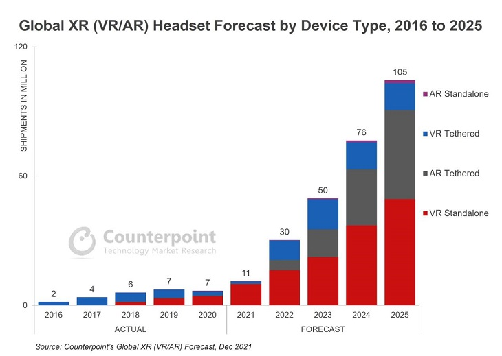全球XR头显出货量将增长10倍,至2025年突破1亿台