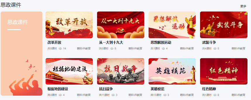 为了让元宇宙+党建应用效果好,除了配备了数百套VR全景内容,元宇宙党建平台还准备了大量的精品课程,比如《百年故事──党史微课堂》《伟大的新时代──十八大以来党和国家事业取得的重大成就》《中国共产党领导力密码》《中国精神──中国共产党人的精神谱系》《绿色中国100》等,在观看这些课程的时候,不论身在何处,大家都可以在同一空间中一起观看、讲解和互相交流,学习效果和效率有了质的提升。