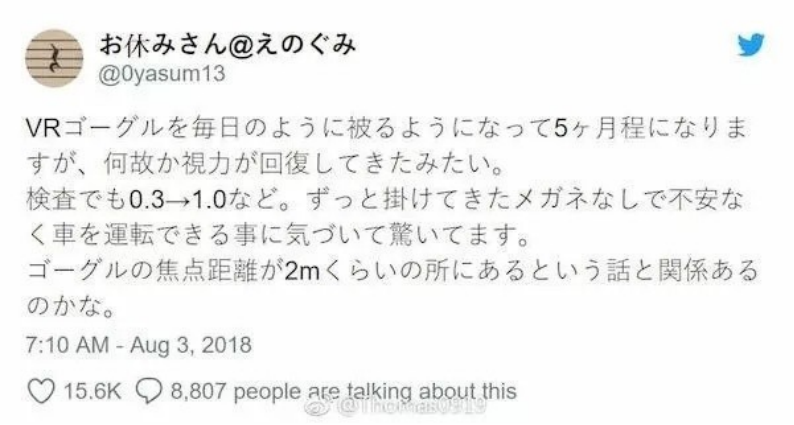 所以你在VR世界看到景物,引发的晶状体活动和现实世界里看到景物并无不同。“VR设备屏幕离眼睛很近,会损伤视力”这种谣言,也是时候该拜拜了。