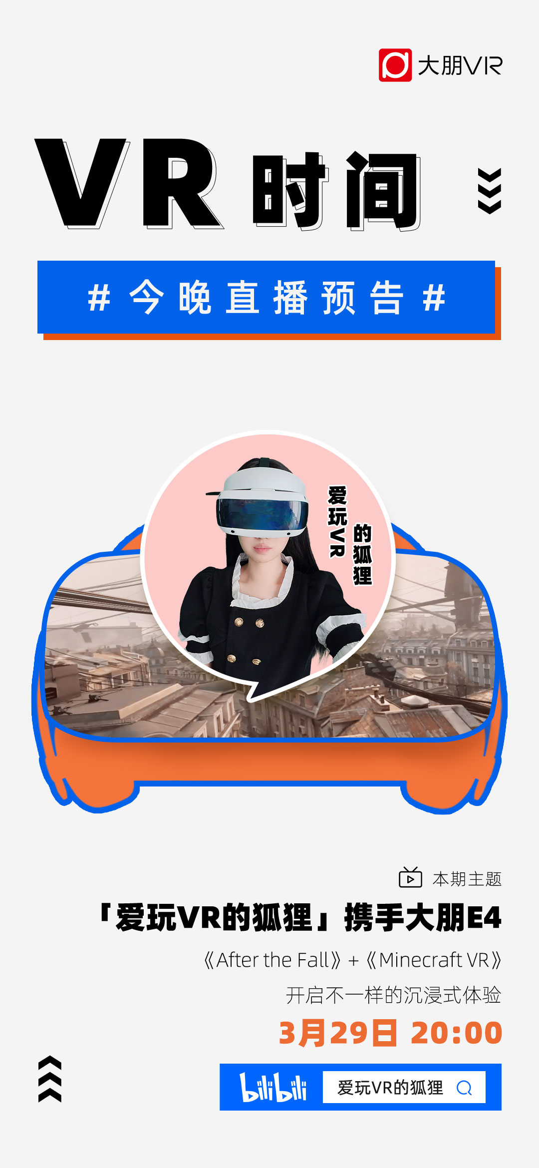 今晚 20:00,B站「爱玩VR的狐狸」携手大朋E4 😘